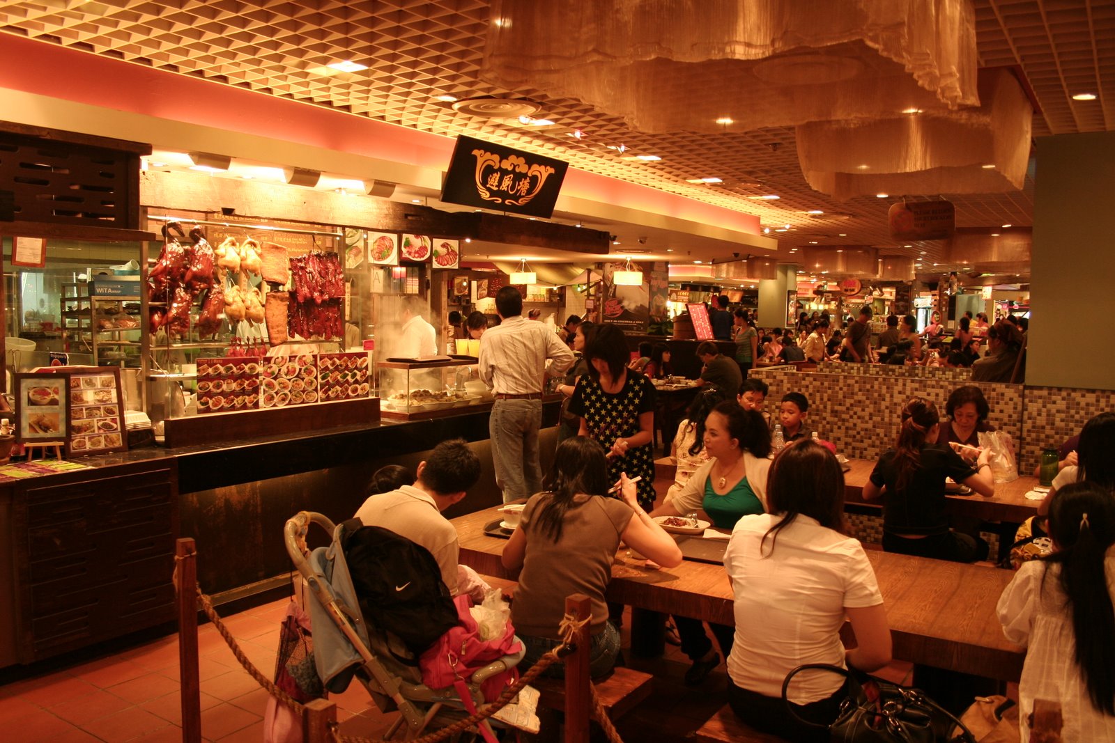 Alışveriş merkezlerindeki yemek düzeni biraz farklı. Herhangi bir restorandan tepsi ile yemeğinizi alıp ortadaki masalarda yiyorsunuz. Ama masalarda ne tuz var, ne peçete. Tuz olayı hadi neyse, bu adamlar tuz kullanmıyor. Peçete isterseniz 3 tanesi 1 dolardan satıyorlar. Ve ben peçete satın alan birini görmedim. Adamlar pintilikten yemek sonrası yalanarak temizleniyor sanki. Burayı görünce bizim ne kadar peçete bağımlısı hale geldiğimizi anladım. Ne yersem yiyeyim 2-3 peçete kullanmadan kalkamıyormuşum meğer. Yemeğinizi aldığınız yerde içecek de satılmıyor. Bu yemek katlarında sadece içecek satan bir iki yer var. Oraya gidip ayrıca içeceğinizi alıyorsunuz. Kola falan var ama yerel halk pek itibar etmiyor. Diyet kola ise birçok yerde hiç yok. Ne içiyorlar diye baktım, soya sütünden yapılma bir şey var, o popüler. Soğuk buzlu çaylar var çeşit çeşit. Buzlu çay güzeldir diye aldım bir iki kere. Bizdeki ile alakası yok. Çok garip geldi ve genelde sonuna doğru midemi kaldırdı. Buna rağmen ısrarla içemeye devam ediyorum. Dün soya fasulyeli krisantem çiçeği çayı içtim. Bööö, daha da içmem.